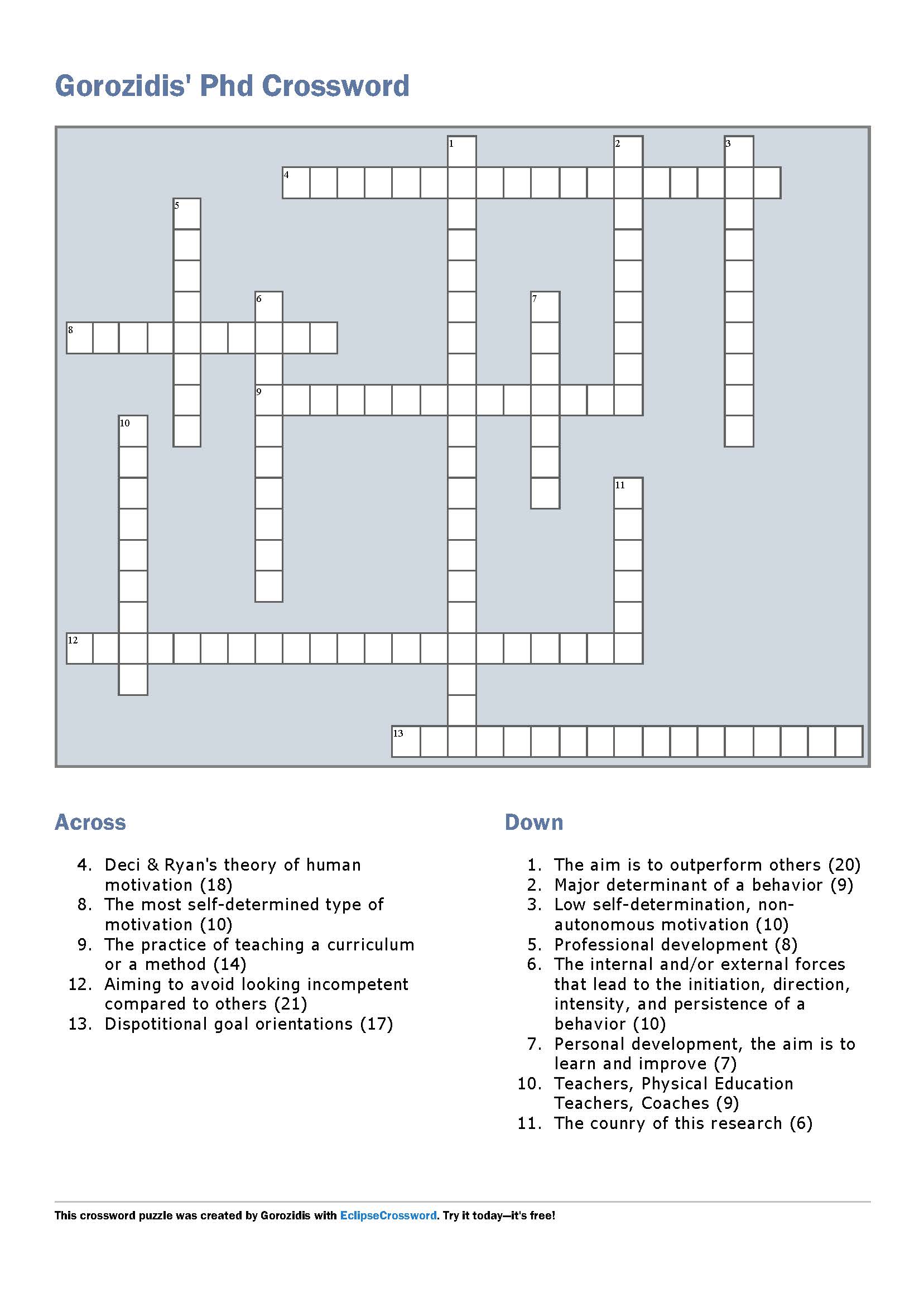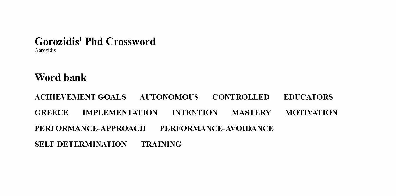 Phd Crossword20 May 2017 in Καλωσόρισμα - Welcome page tagged Downloads by JORGE KEY: Word bank Gorozidis' Phd Crossword (download) KEY: Word Bank (download)