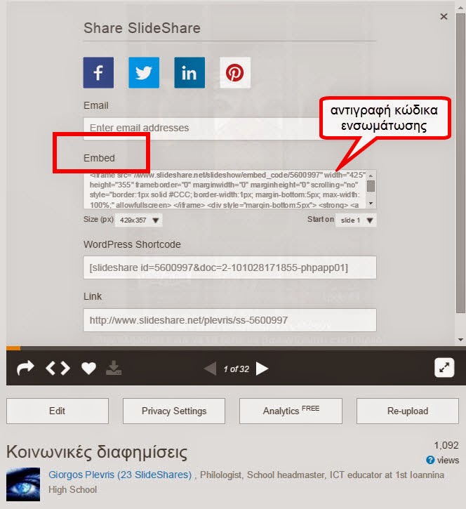 Δημοσίευση παρουσιάσεων στο SlideShare