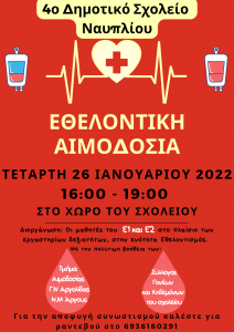 Γράμμα στον Διευθυντή του τμήματος εθελοντικής αιμοδοσίας ΓΝ Αργολίδας , ΝΜ Άργους για την διοργάνωση εθελοντικής αιμοδοσίας στο σχολείο μας.