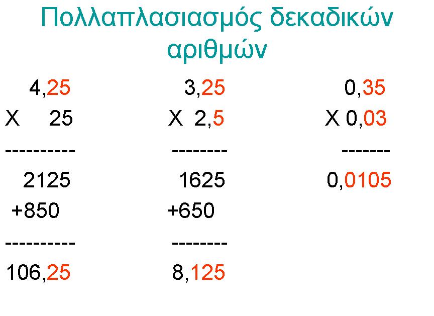 Όταν πολλαπλασιάζουμε δύο δεκαδικούς αριθμούς μεταξύ τους ή ένα
