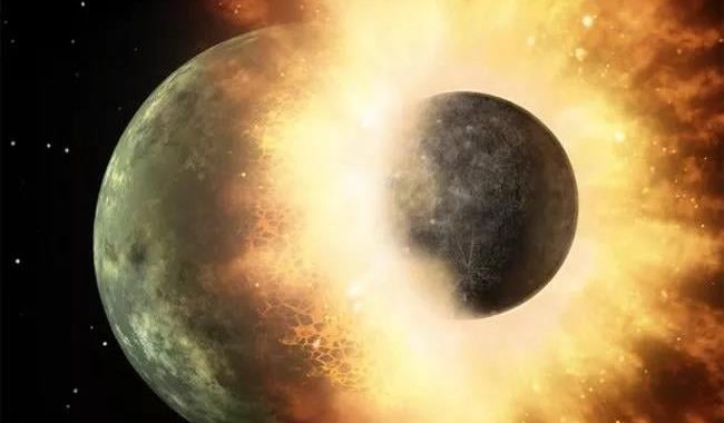 Στα πρώτα της στάδια, η Γη ήταν ένας πυρακτωμένος, ηφαιστειακός κόσμος. Λιγότερο από 100 εκατομμύρια χρόνια αργότερα ένα διαστημικό σώμα στο μέγεθος του Άρη συγκρούστηκε μαζί της. Αυτό το γεγονός σύμφωνα με την κρατούσα θεωρία οδήγησε στη γέννηση της Σελήνης αφού διασκορπίστηκε γύρω από το Γη μια γιγάντια ποσότητα συντριμμιών της σύγκρουσης τα οποία γρήγορα ενώθηκαν σχηματίζοντας τον φυσικό μας δορυφόρο.