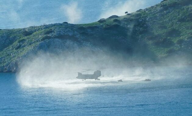 - Εκκένωση προσωπικού με χρήση SPIES (Special Patrol Insertion/Extraction System) και απομάκρυνση λέμβου με είσοδο εντός ελικοπτέρου CH-47.